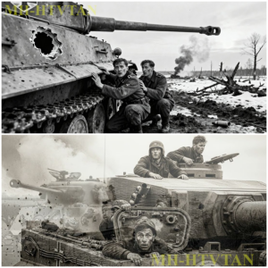 The morning fog hangs thick over the Norman hedge. August 1944. A tiger eye sits hullled down behind an earthen burm. Its…