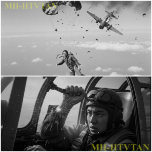 He was falling through 8,000 ft of Pacific air, cockpit glass embedded in his face, parachute burning, and below him, nothing but…