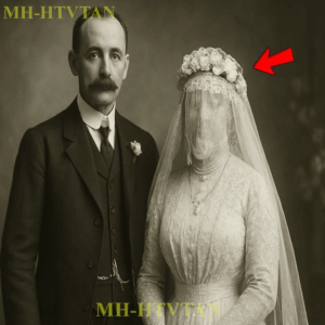In 1912, a formal studio photo captured a bride and groom on their wedding day. But something unusual stood out. When the…