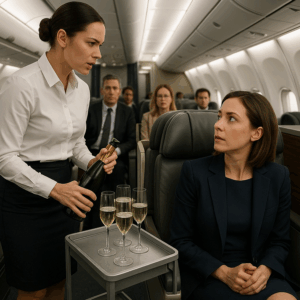 Flight attendant refuses to serve champagne to black woman, 30 minutes later she regrets her actions… The hum of the jet engines filled…