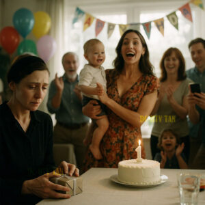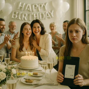 The cake knife was still in my hand when she stood up. Her voice cut through the laughter like glass breaking. “My…