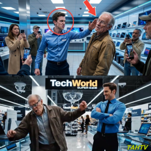 A sharp slap echoed across the entire electronic store. Smack. Everyone froze. A young salesman had just slapped an old man so hard…