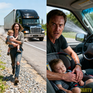 I’m Olivia Miller, 26, stumbling along the gravel shoulder of Route 9 with my 2-year-old clinging to my chest. Semi-truckss are blasting past…
