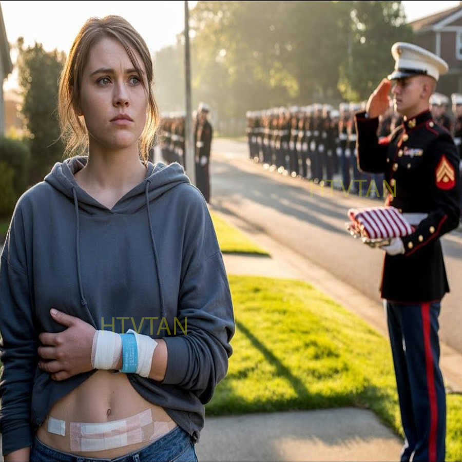 The Marines said nothing. Then, on silent cue, they raised their hands and saluted all at once. The sound of hundreds of arms snapping upward in perfect unison echoed across the quiet street dot. Emily froze. Her eyes welled with tears. Her mouth trembled, and her heart raced in disbelief. Corporal Rivas stepped forward slowly but deliberately.
