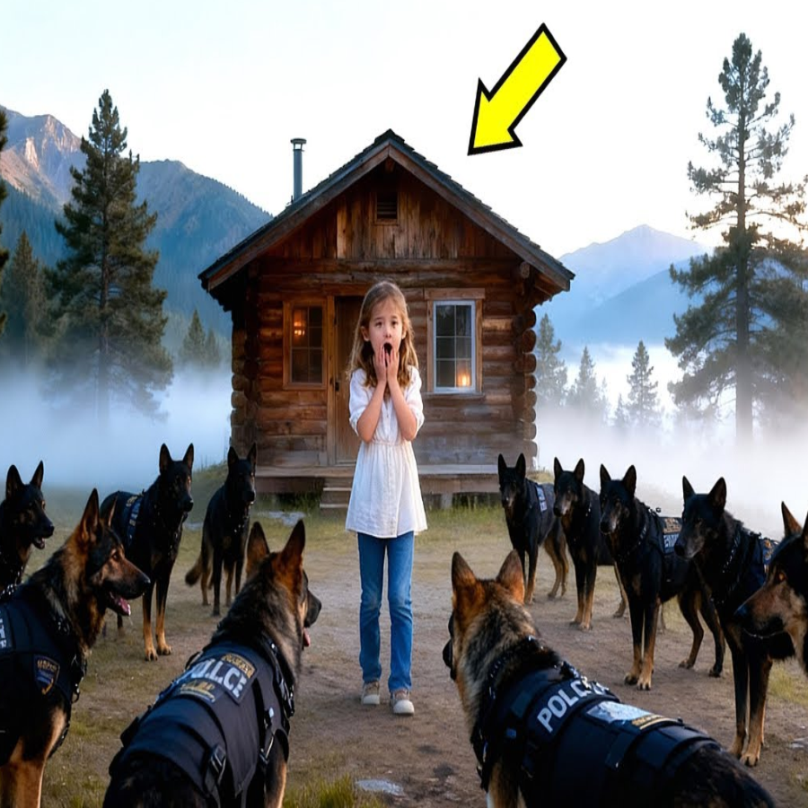 They stood like soldiers preparing for war. The girl’s hands flew to her mouth. “Mom,” she whispered, but the cabin behind her stayed silent. No movement, no answer. Neighbors watched from a distance, confused and terrified. Some whispered, “Why were 14 police dogs gathered around a little girl living miles from the nearest town? Why were they acting without handlers? And why every time someone stepped forward to help her? Did the dogs growl in warning? And why did they refuse to let her step back inside her own home?” No one knew that the truth hiding inside that cabin