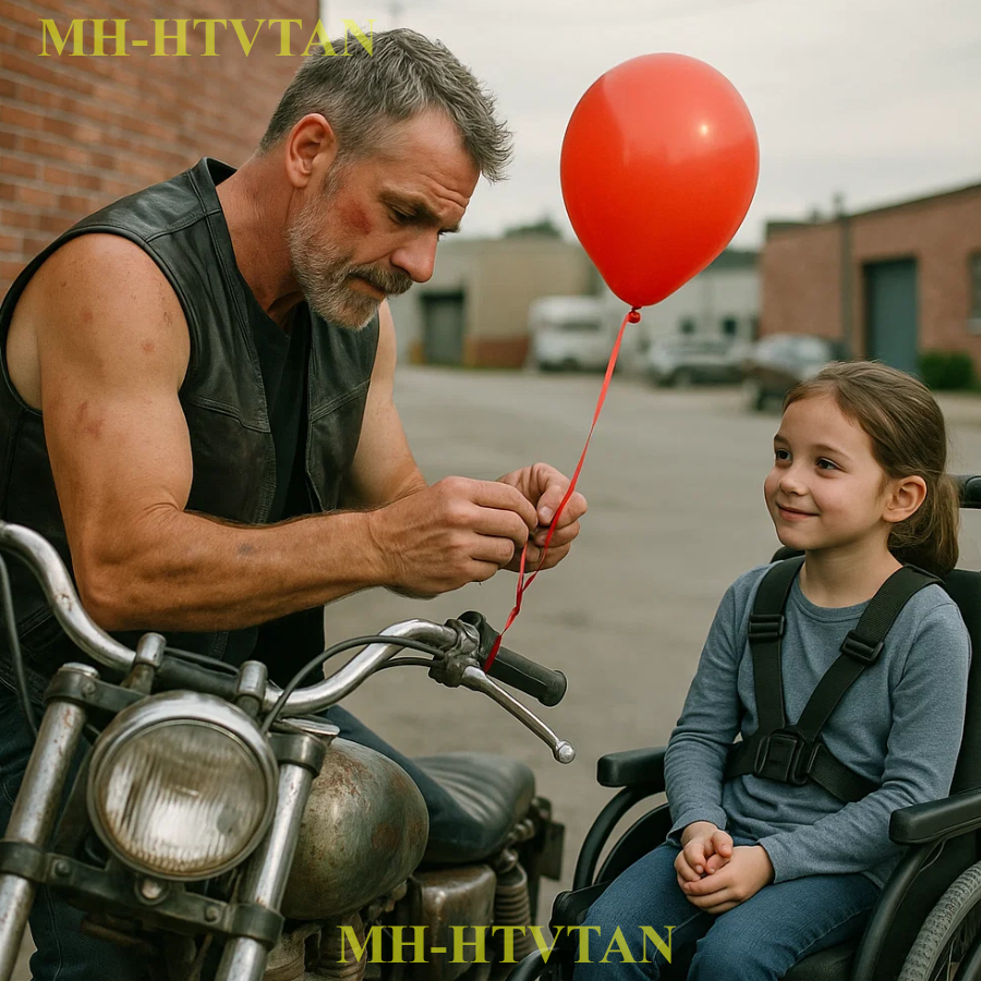 But Olivia saw him more than the tattoos and the anger. She saw the slump of his shoulders, the weariness in his eyes that looked too much like her mother’s after a long day. She hesitated only a moment before rolling closer, balloon string trembling in her hand. Rick looked up, startled.