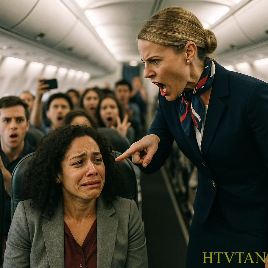 The cabin went silent. A mother covered her child’s ears. Someone gasped. Danielle froze — shock, disbelief, and humiliation flooding her face. “Excuse me?” she managed to say, her voice trembling.