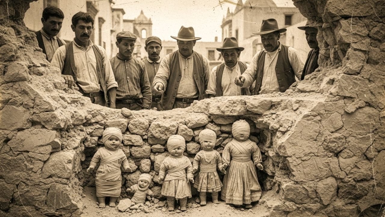 El profesor Álvarez se acercó al hueco en la pared y examinó las muñecas con interés profesional. sin el temor reverencial que mostraban Manuel y sus ayudantes. “Fascinante”, murmuró mientras toman notas en una pequeña libreta. “Esto parece ser un escondite ritual. La disposición de las muñecas, los objetos a sus pies, todo sugiere un propósito específico.