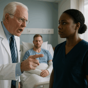She completed her tasks with precision and care, refusing to let Mr. Johnson’s bigotry affect the quality of her work. When she finally emerged from the room, Angela found Dr. Greaves waiting in the hallway, a look of feigned concern on his face. “‘Everything all right in there, Nurse Parker? We heard quite a commotion.’ Angela met his gaze evenly.