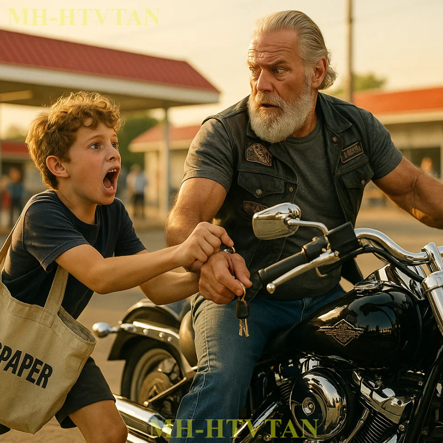 Get off the bike. Sir boy snatched keys. Before he could ride, biker collapsed seconds later. 13-year-old Marcus delivered newspapers on morning route. Watched veteran biker stumble toward Harley with flushed red face, slurred speech, trembling right hand. When man reached for ignition, Marcus sprinted across parking lot and snatched keys. from shaking fingers.