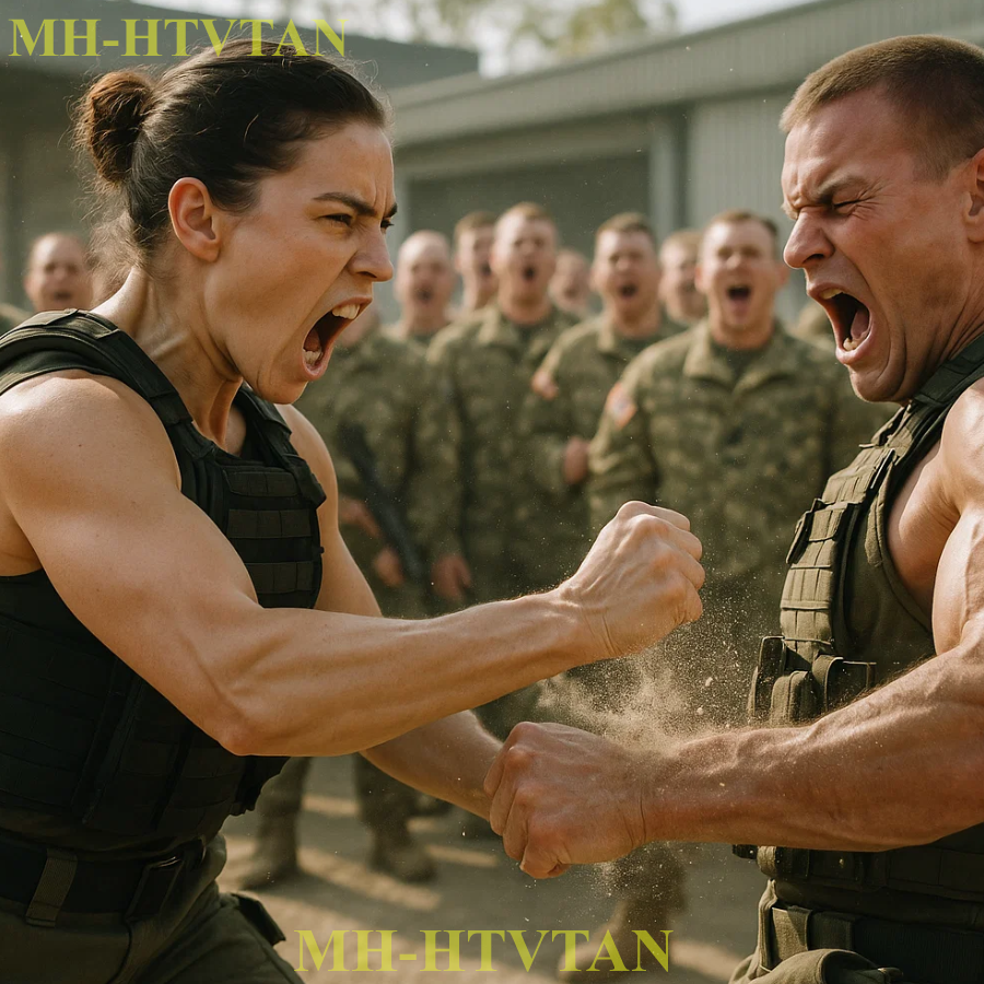The morning sun seemed to burn hotter as the two soldiers prepared for what everyone sensed would be more than just a training exercise. Sergeant Williams stepped forward, attempting to maintain control of the situation. This will be a controlled demonstration, he announced firmly. We’re here to learn defensive techniques, not to settle personal disputes.