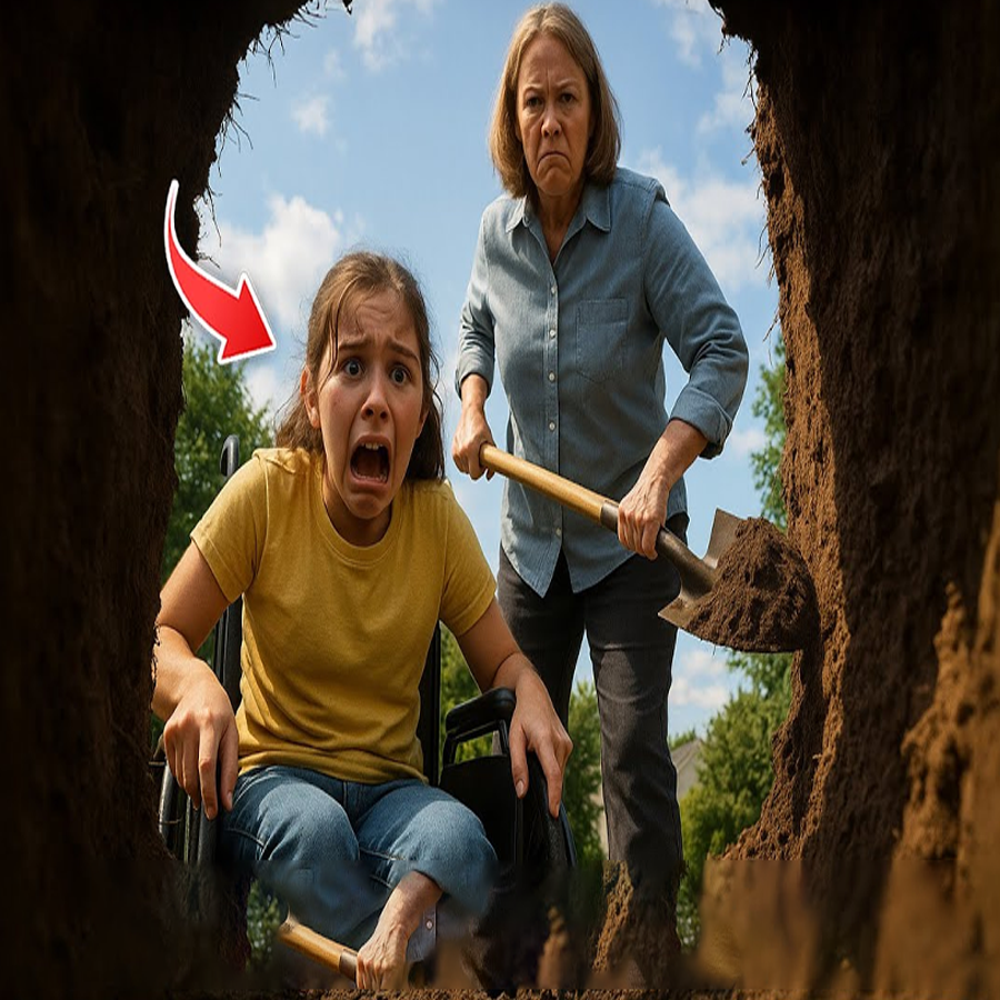 Max wasn’t barking like he always did. The backyard gate was open, a gate I always locked, and the air, it was too still. I ran. What I saw next stopped my heart cold. Payton sat frozen in her wheelchair under the old oak tree, her face pale, eyes wide with silent terror. Behind her, Eliza was hunched over the earth, sweat glistening on her brow as she drove a shovel into the soil.