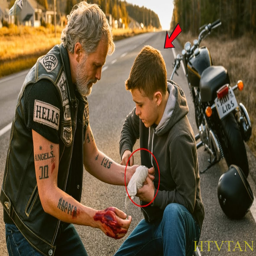 When 16-year-old Marcus found a bloodied motorcycle captain lying on the highway, he had no idea the patch on that leather jacket would change everything because the man he was about to save wasn’t just any biker. He was a Hell’s Angel’s captain who never forgets a debt. What started as a simple act of kindness on a lonely road became something much bigger when Marcus showed up to that diner the next day surrounded by leather and chrome face to face with one of the most feared motorcycle clubs in America. But when a hardened biker captain looks a homeless teenager in the eye and says, “Name your price.”