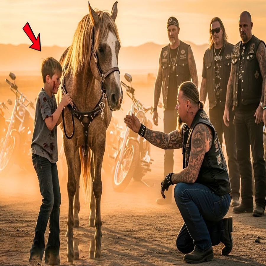 They say angels don’t always come from heaven. Sometimes they ride steel and leather or run on hooves through dust. The day a wild horse dragged a terrified boy into a biker camp, everything changed. What those men did next turned fear into faith and left an entire town speechless.