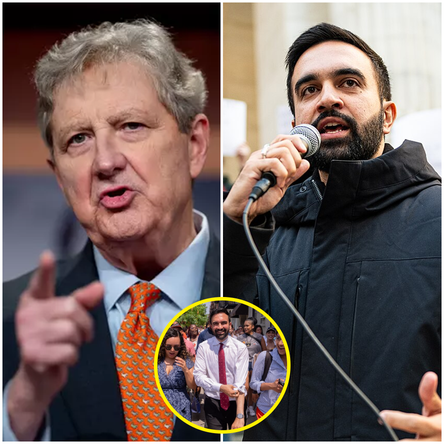 And then — the moment that would dominate every social feed and cable chyron by noon — Kennedy snapped the binder shut, spun toward the front row, and pointed directly at NYC mayor-elect Zohran Mamdani, who had been invited for what was supposed to be a policy roundtable.
