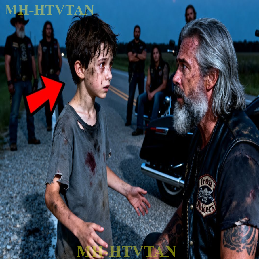 Jake pulled off his helmet, his gray beard catching the last light of day. Behind him, seven more bikers did the same, their faces confused, annoyed. “What the hell, Jake?” Marcus called out, wiping sweat from his dark forehead. Jake didn’t answer. He was already off his bike. The boy stumbled out from the trees. He couldn’t have been more than 9 years old. His face was stre with tears and dirt, his clothes torn at the knees.