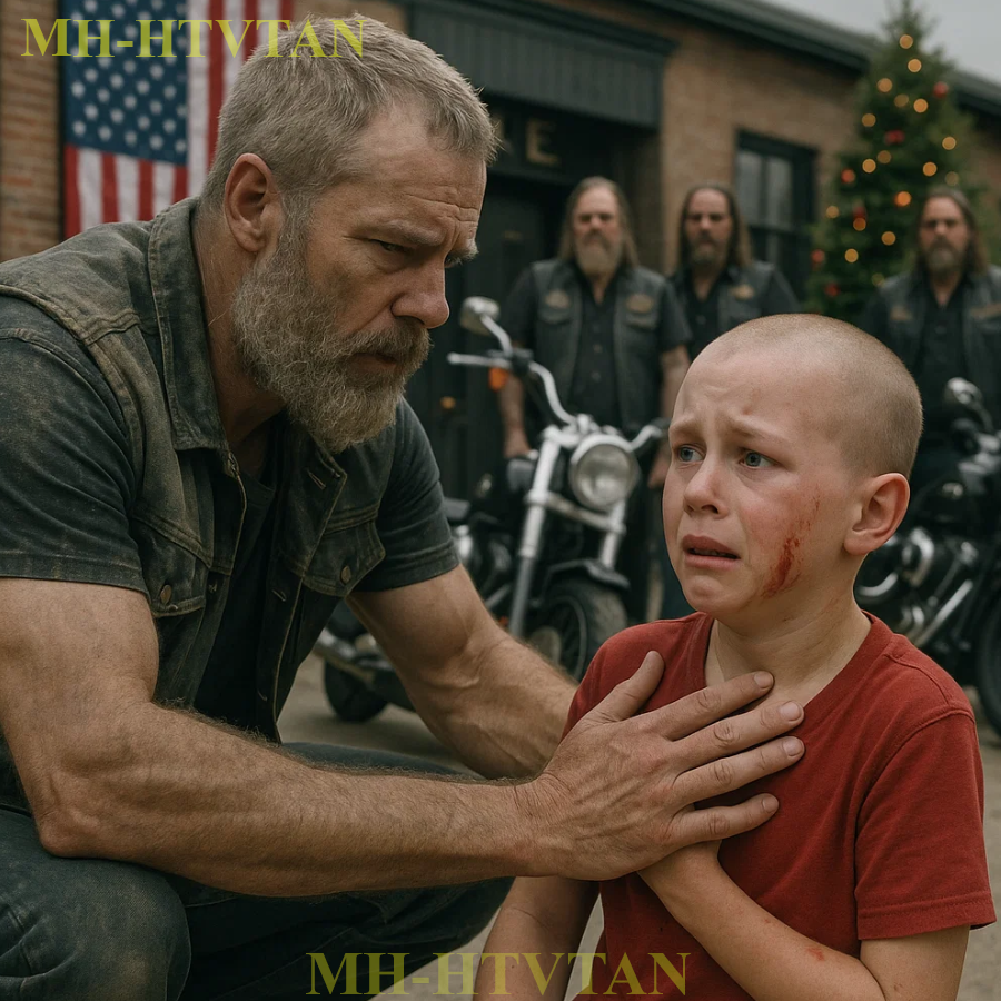 He shaved my head for money. Then Hell’s Angels took action. The child’s bare feet hit gravel and the bikers turned as one. 20 leatherclad men staring at the small figure stumbling into their circle, head shaved raw, dust streaked, face wet with tears. She touched her scalp with trembling fingers and whispered five words that would ignite a reckoning.