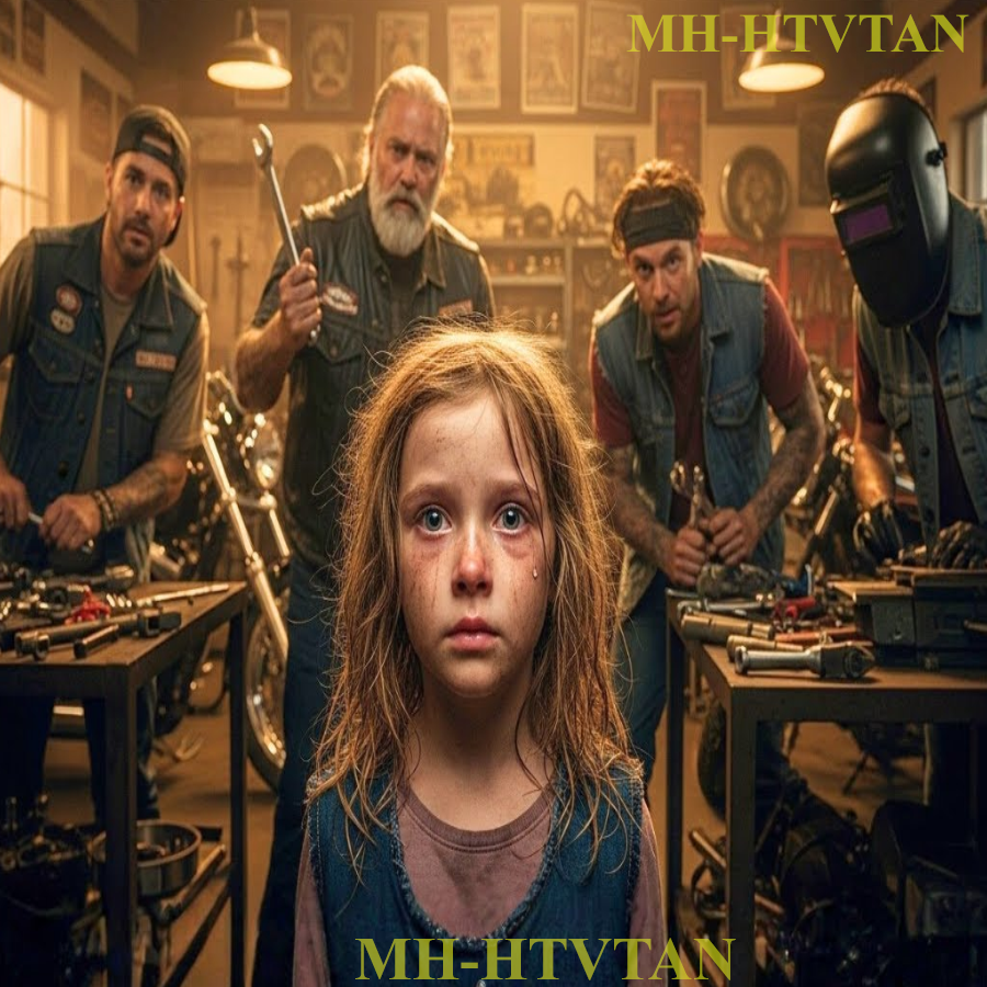 Inside the Red Lantern garage, members of the Hell’s Angels nomads were finishing a long day of wrenching. Music played low, conversation easy, the scent of oil familiar as family. That’s when the front door slammed open so hard it rattled the windows. A girl, eight, maybe nine, stumbled inside, breathing like she’d sprinted miles. Straw blonde hair matted, cheeks scraped, oversized purple sweatshirt hanging off one shoulder. She put her hands up like she was begging someone not to hit her. Please, she sobbed, voice cracking.