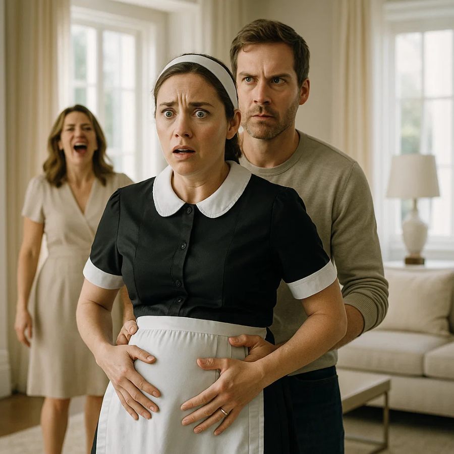 My heart dropped. He hadn’t spoken like that in years. I hurried toward the staircase, grocery bags still in hand. “Chris? What’s going on?” He turned toward me, and what I saw stopped my breath. His face was twisted — not with anger, not with sadness, but with something far more dangerous. Self-righteousness. The kind of certainty only a fool or a guilty man carries. Behind him stood Maribel, our twenty-five-year-old housemaid — sweet but quiet, always shy around me, always polite, always a little nervous. Today she looked worse. Her face was pale. Eyes red. Hands shaking. She stood with her arms crossed protectively over her stomach.