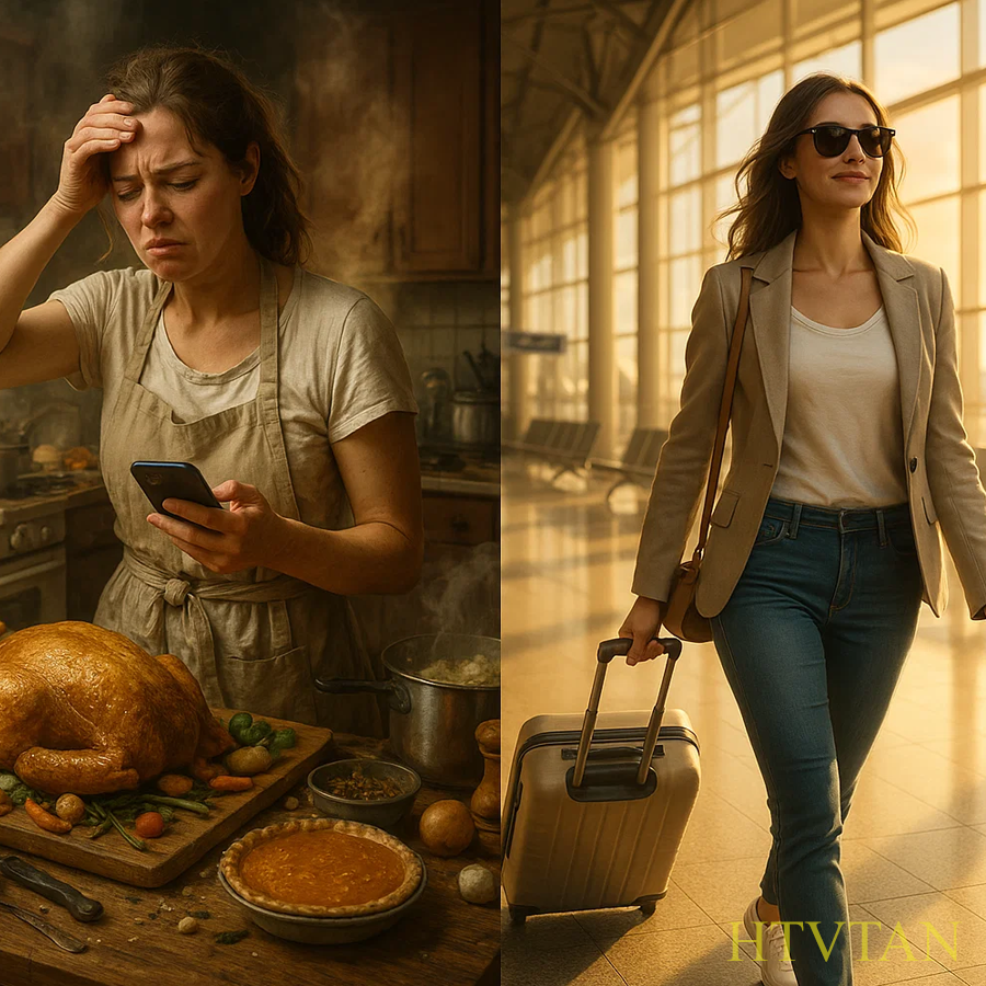 I’d be loading the dishwasher for the fourth time, wrapping endless containers of food, and planning the elaborate leftover meals that would stretch Thanksgiving into the following week. Instead, I was going to order room service and spend the day on the beach. When I finally turned my phone back on, it had exploded with messages.
