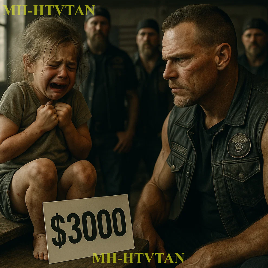 6-year-old Emma crashed through the doors of Thunder Road Motorcycle Club, her bare feet leaving bloody prints on concrete, screaming words that made 60 battleh hardened bikers freeze mid-con conversation. My stepfather’s selling me right now for $3,000. The man’s coming to get me, please. Before anyone could react, two vehicles pulled into the gravel lot, a rusted pickup and a black sedan.