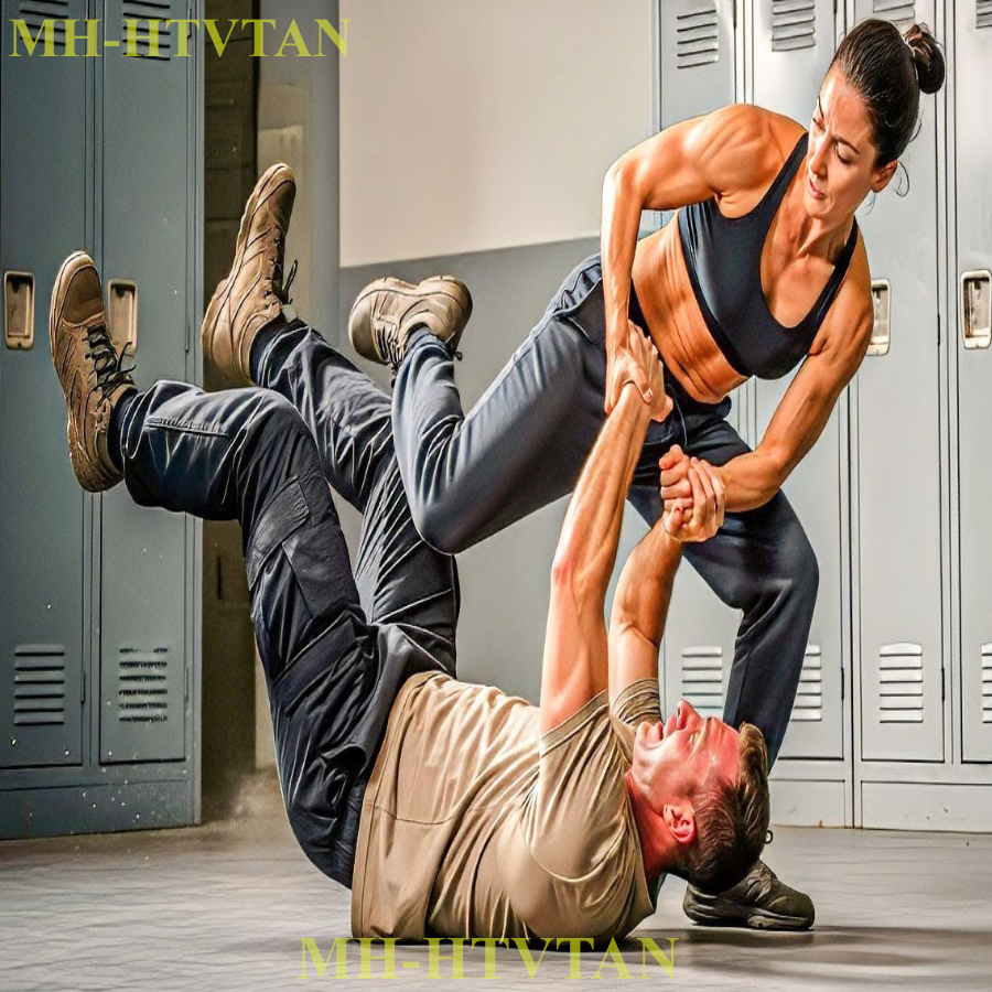 Lena’s right hand snapped up not to pull his hand away, but to pin it against her own neck, controlling the angle. Simultaneously, her left hand cuped his elbow. She dropped her weight, rotated her hips. Basic combives, the kind that becomes muscle memory after 10,000 repetitions. Rogan’s leverage vanished. His grip loosened just enough.