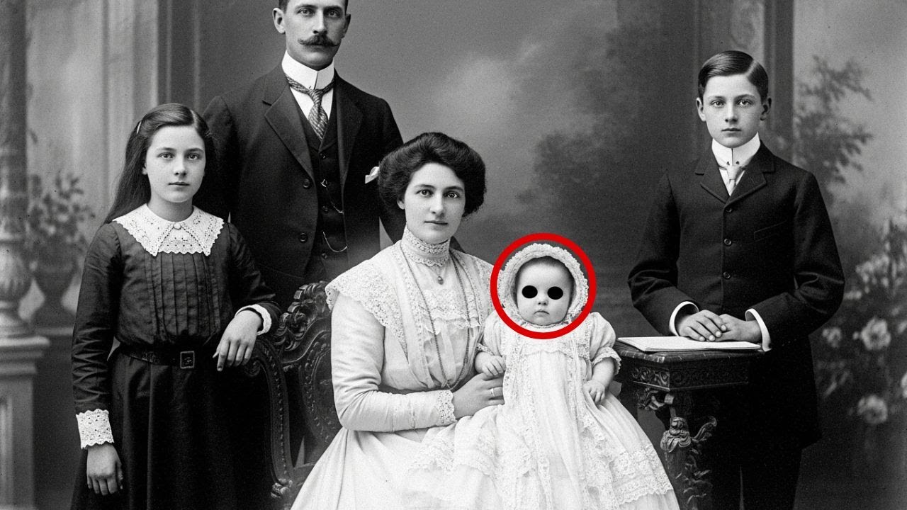 While the parents and older children appeared normal for a family portrait of the era, something about the baby was deeply unsettling. The infant’s eyes appeared completely black. Not the natural dark brown that might appear black in old photographs, but an unnatural void like darkness that seemed too intense for a normal child. Margaret turned the photograph over and found an inscription in faded ink.