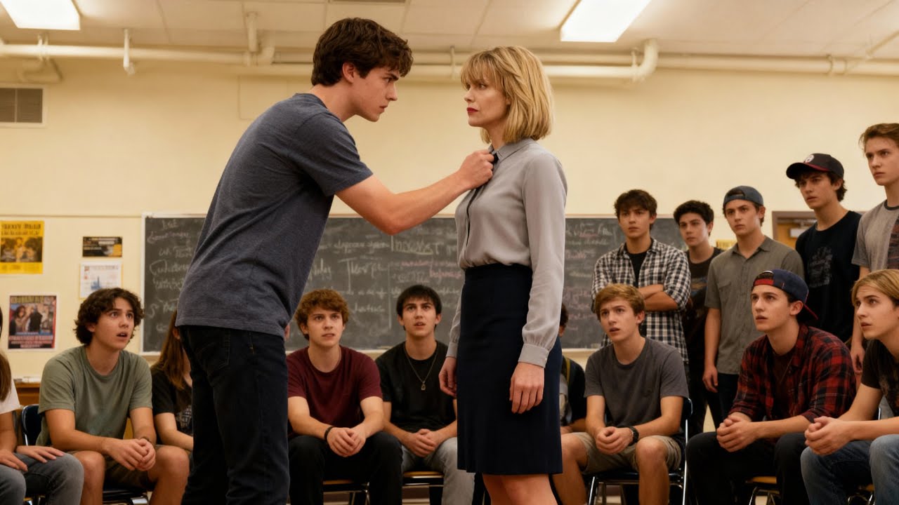 They are loud, distracted, and show no interest in learning. Trying to gain control, Lannne asks one student what happened to the previous substitutes. The student shouts that they killed them, grabbing the class’s attention. Alio Ramirez, the class leader, steps in and taunts Luan. His friends cheer loudly, making the situation even more chaotic and disturbing nearby classes.