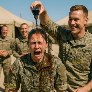 commander. That was when he grabbed a can of coke from a nearby cooler, shook it, and poured it over her head. He did it slowly, deliberately, while 30 soldiers from both units watched. A few shifted uneasily. One half smiled and then looked away. Hollands laughed and said she looked like she could use a shower.