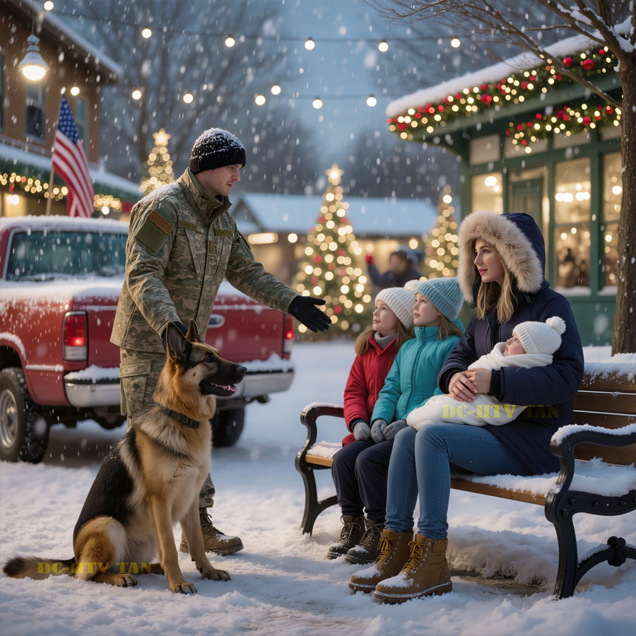 He came back hoping to find a piece of himself again, but instead found a quiet loneliness shadowing every familiar street. His service dog, a German Shepherd named Arrow, walked faithfully by his side, alert and watchful. Calder had been driving through town, letting memories guide him when he saw the silhouette on the bench.