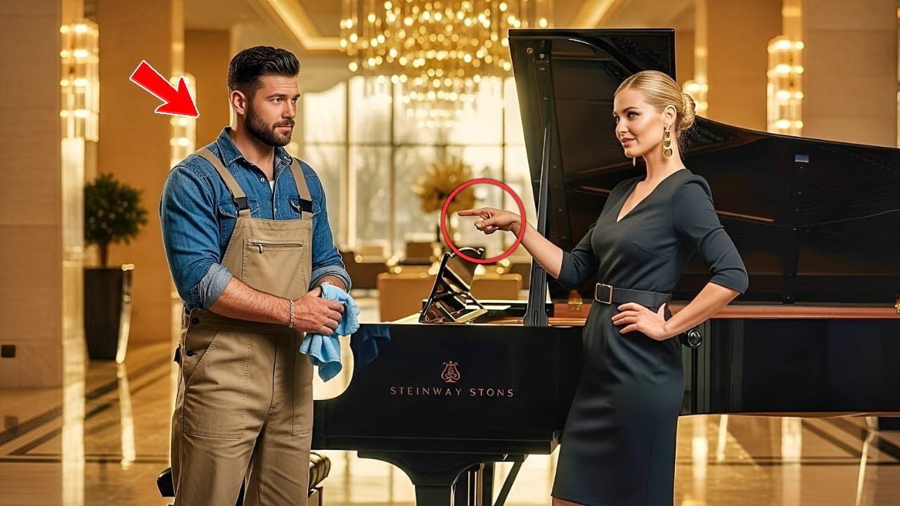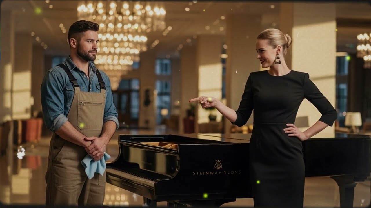 He was just a janitor to everyone else, invisible in his khaki uniform and calloused hands. But to the grand piano tucked in the corner of the hotel lobby, he was a ghost of something forgotten, someone who once mattered. Every night after the guests left and the chandeliers dimmed, he would gently wipe the dust from the black and ivory keys, his fingers pausing like they remembered a time they belonged there.