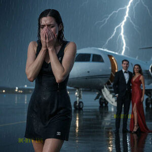 My husband’s private jet roared off, leaving me stranded in a stormy airirstrip, laughing with his mistress on board. He thought I’d chase him. He said, “I rented my own jet to Dubai.” Midair, his phone blew up. Leaked affairs frozen accounts revoked co title. Now he’s grounded permanently.