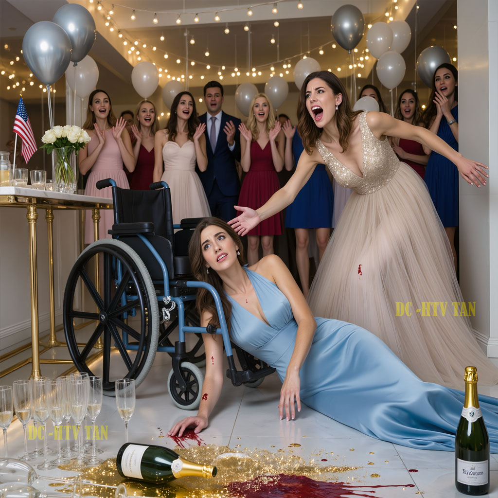 The sound of a $200 bottle of Dom Perignon shattering on the tiled floor didn’t scare me as much as the manic look in my sister Cassie’s eyes. She screamed that my black wheelchair looked like an ugly lump of coal, ruining her perfect engagement photo. Then she shoved me straight into the glass tower of champagne, blood mixed with sparkling wine.