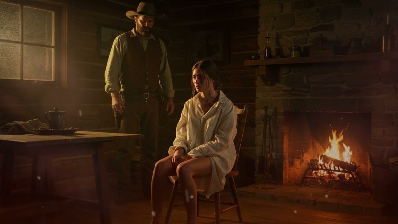 Emily coughed and gasped as Thomas lifted her into his arms. Her body was trembling from the cold water. Her torn dress clung to her skin. He did not waste a second. He placed her on his horse and rode fast toward his ranch. The old wooden house came into view. Thomas carried her inside and laid her gently on a bed near the fireplace.
