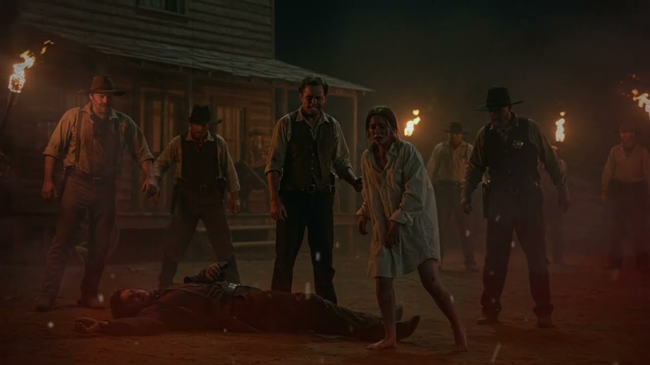 The sheriff nodded to his men. Take them in. Within minutes, Jack and the debt collector were bound in ropes, shoved onto their horses, and led away toward town. The torches faded into the distance. All that remained was the quiet crackle of the fire and the heavy breathing of Thomas and Emily. Thomas struggled to his feet, wiping the blood from his brow, Emily ran to him, throwing her arms around his chest.