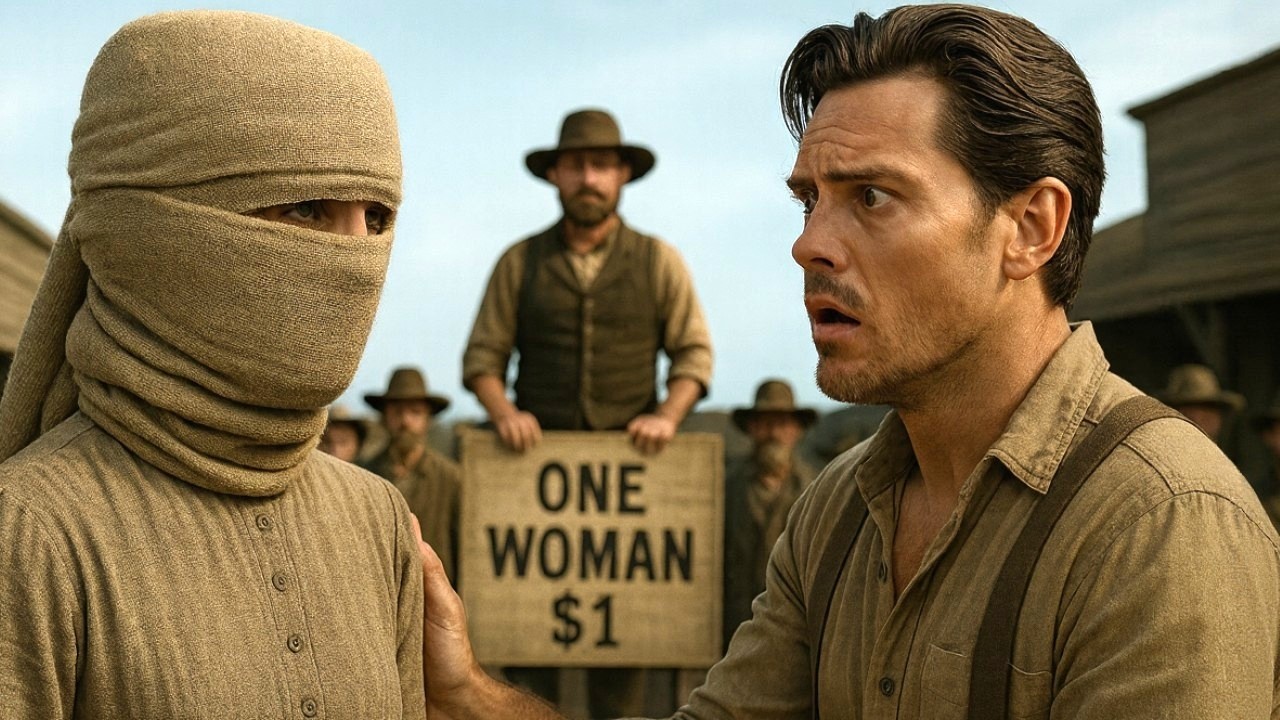 , his boots heavy with dried MUD, the brim of his tan hiking cap masked his face, his broad shoulders, his steps, even one hand was wrapped in leather strips, the kind that was obtained by rope and heat, not an accident, he did not say anything until he came to the front, 1 dollar, he said, the atmosphere changed, are you sure? The auctioneer asked, don’t even want to see what you are buying? The man looked at the woman, she did not flinch, I am not buying a face, he said, I will marry a person, even if the wind still blows,