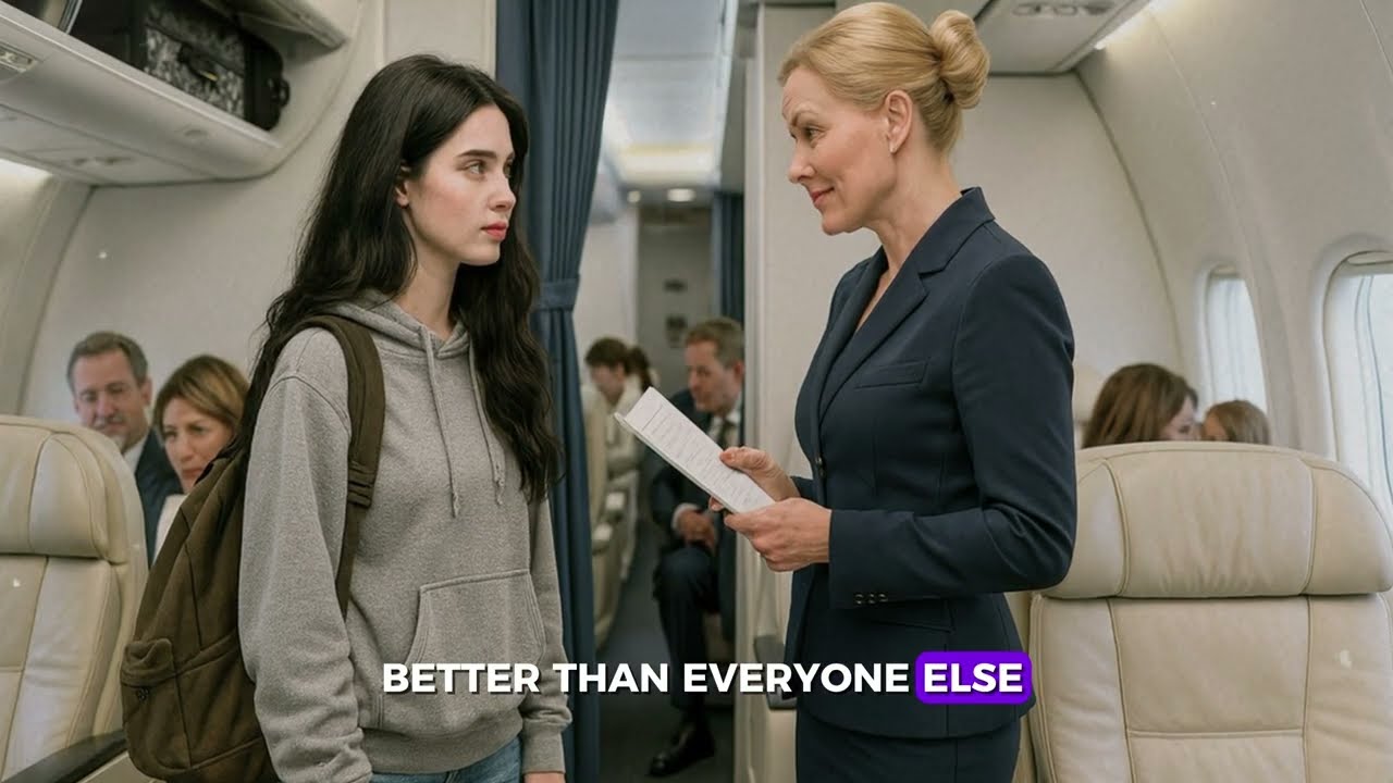 C, the stairs felt sharper, more deliberate. Her hoodie was worn, the cuffs frayed from years of use, and her jeans had a small tear at the knee, barely noticeable, unless you were looking for flaws, which it seemed everyone was. She moved down the narrow aisle, careful not to brush against the luxury carry-ons that lined the path, like trophies.