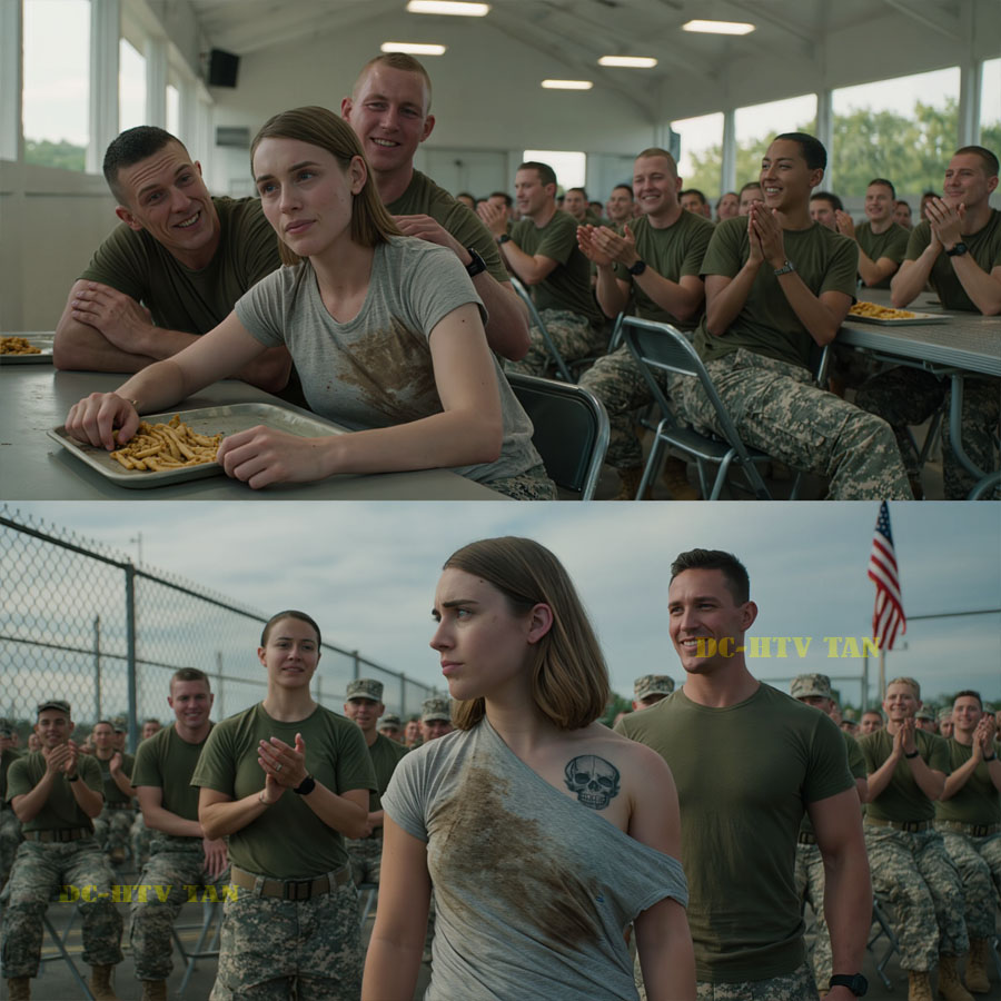 Olivia paused her fork halfway to her mouth and looked at him. “I’m eating,” she said, her voice steady. Dererick leaned in, smirking. “Yeah, well, eat faster. You’re taking up space real soldiers need.” He flicked her tray, sending a spoonful of mashed potatoes splattering onto her shirt. The room howled.