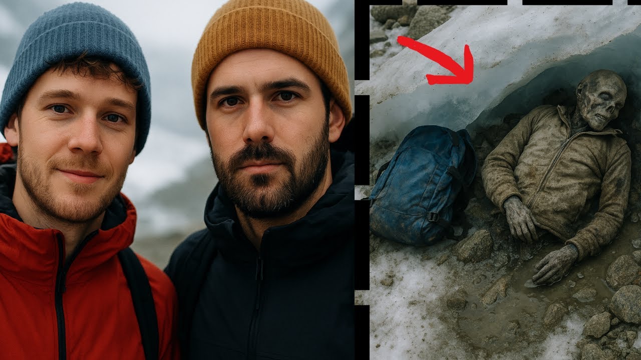 It was the strap of a backpack dark blue with worn seams and a broken buckle. His breath caught in his throat. He looked around and suddenly the surroundings felt colder. 10 meters away, under the edge of a slowly receding ice sheet, he spotted what at first looked like a bundle of old clothing. But as he stepped closer, the outline became horrifyingly clear.