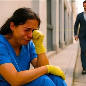 A maid in a blue uniform is thrown out. Branded a thief, her pay stolen, she breaks down in the street until…