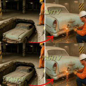 A construction crew found a vintage sports car buried under an old parking garage. When they opened the trunk, they immediately called the…