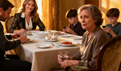 The room, which had been loud, started to quiet in the way it does when something feels wrong even to kids who don’t understand why yet. Forks hovered, conversations stalled.