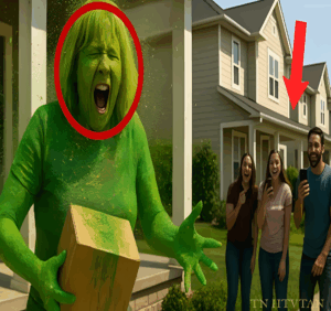I heard a faint popping sound, quickly muffled. It was followed by a shriek of pure unfiltered rage that was so loud I could hear it clearly from across the street. She opened it in her entry. The tracker cam heard the pop. Then she burst onto the porch, glowing neon green and screaming. She wasn’t just dusted with it. She was coated.