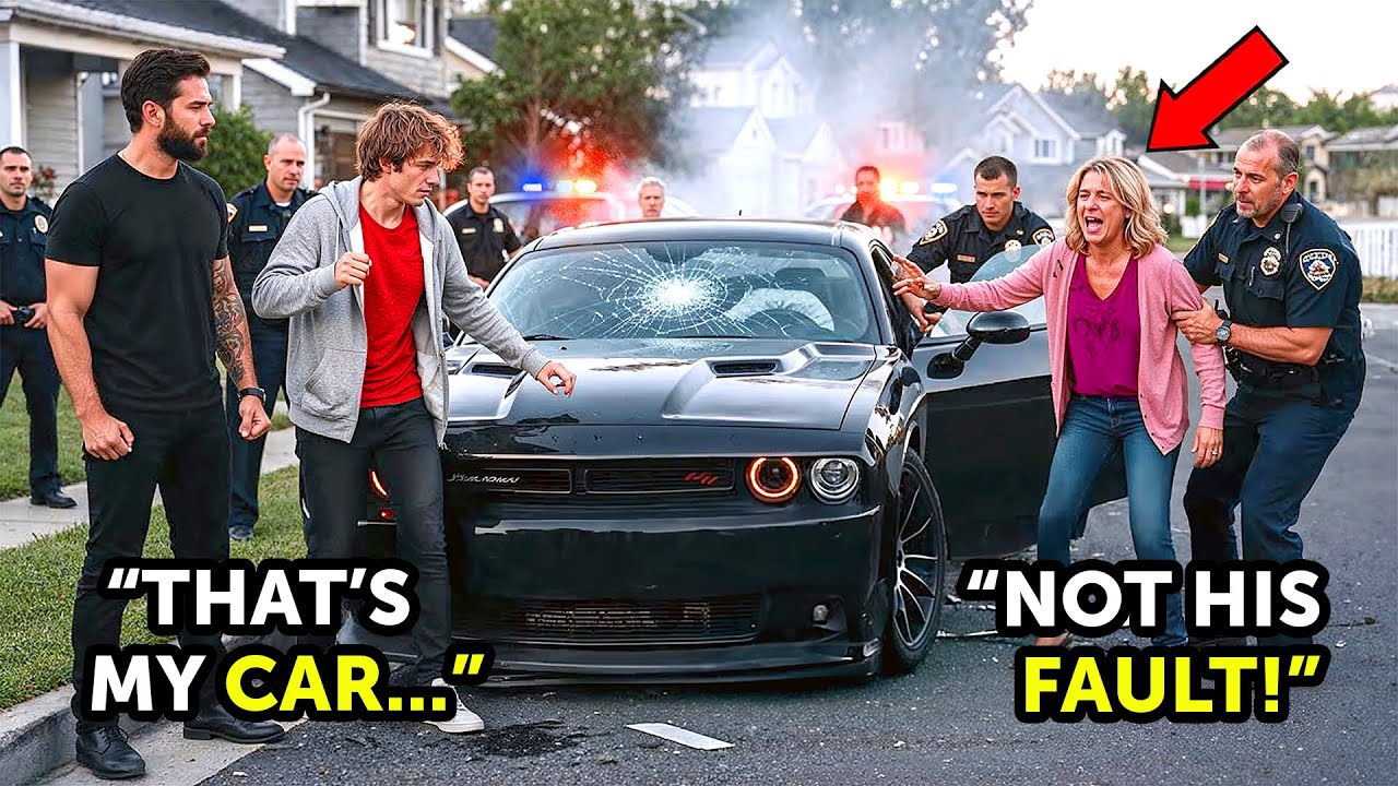 She ran toward the crash scene, her face a mask of pure panic. Two officers immediately moved to intercept her, holding her back as she fought against them, screaming her son’s name. Let me go. He’s just a boy. He’s hurt. It was the perfect thumbnail for the evening’s news report. The wrecked car, the smoking engine, the cops, and the hysterical mother being restrained. It was a moment of pure, unadulterated suburban drama.