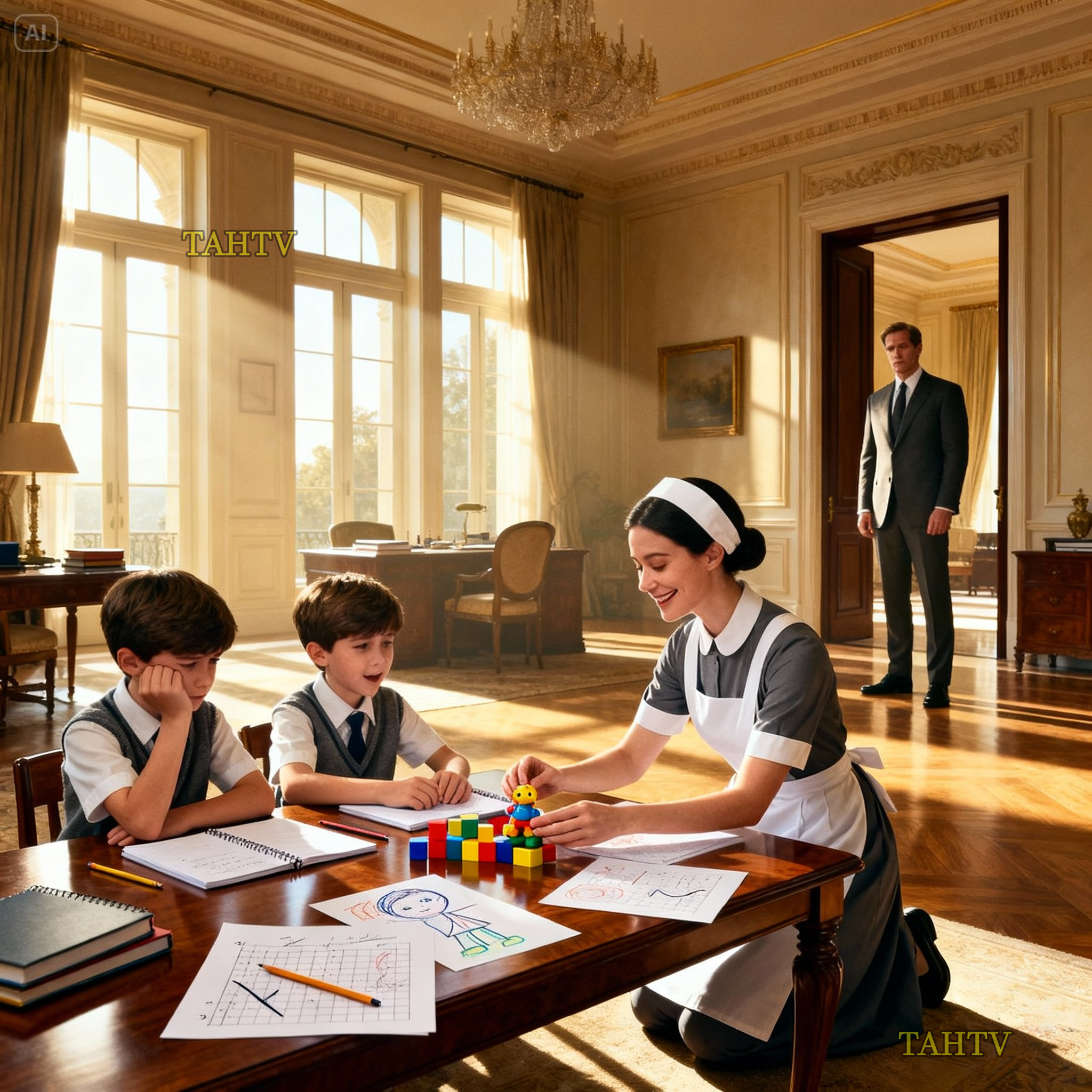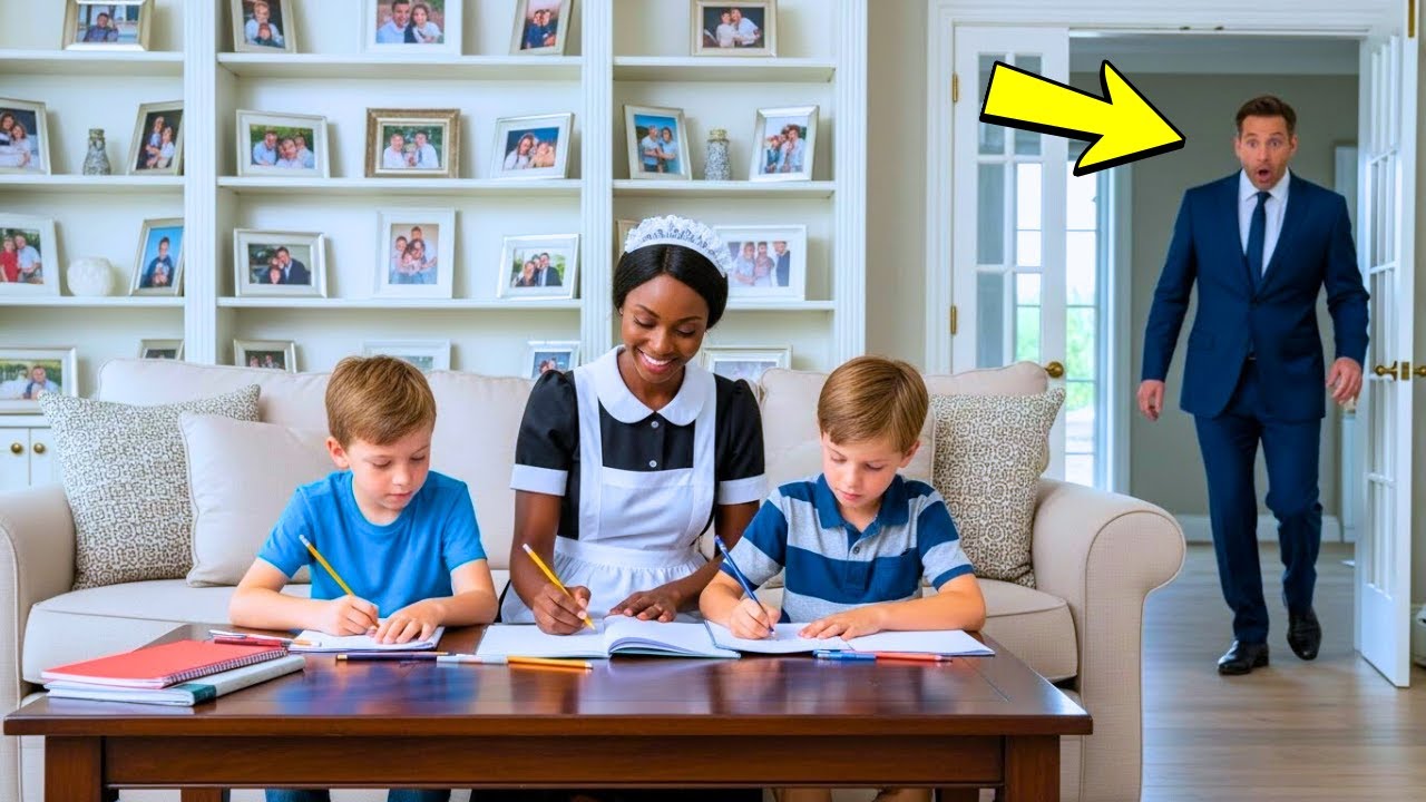 Catherine blinked. Sir, teach me. His voice was raw, desperate. Teach me how to see my own sons. Anthony didn’t sleep that night. Catherine left his office around 7, quietly, still unsure if she had a job in the morning. The boys had already eaten dinner with Mrs.