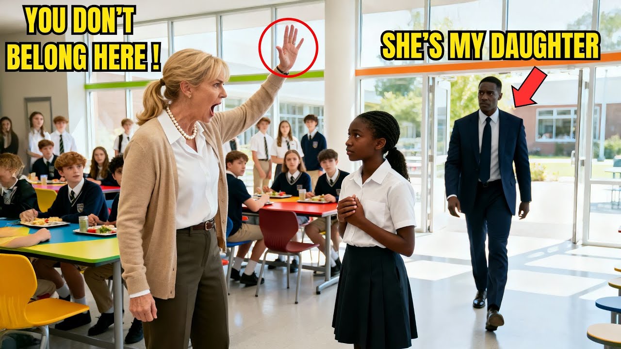 Families who pay real money, not charity cases like you. She yanked the 12-year-old out of her seat. The lunch tray crashed to the floor. Food splattered everywhere. Laughter erupted from nearby tables. Please, my dad pays the same. Your dad? The woman shoved her toward the corner. Your daddy is probably some welfare leech who lied on your application.