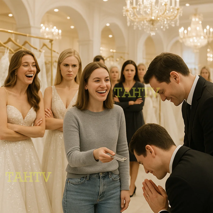 ” Clara stayed silent, only smiling, then handed her card to the manager. The manager bowed, “As always, the payment has been processed by you.” No one had expected that the entire cost of those splendid wedding gowns had been covered by Clara from the very beginning. Clara stood there, her plain gray sweater and faded jeans, a stark contrast to the glittering dresses hanging around her.