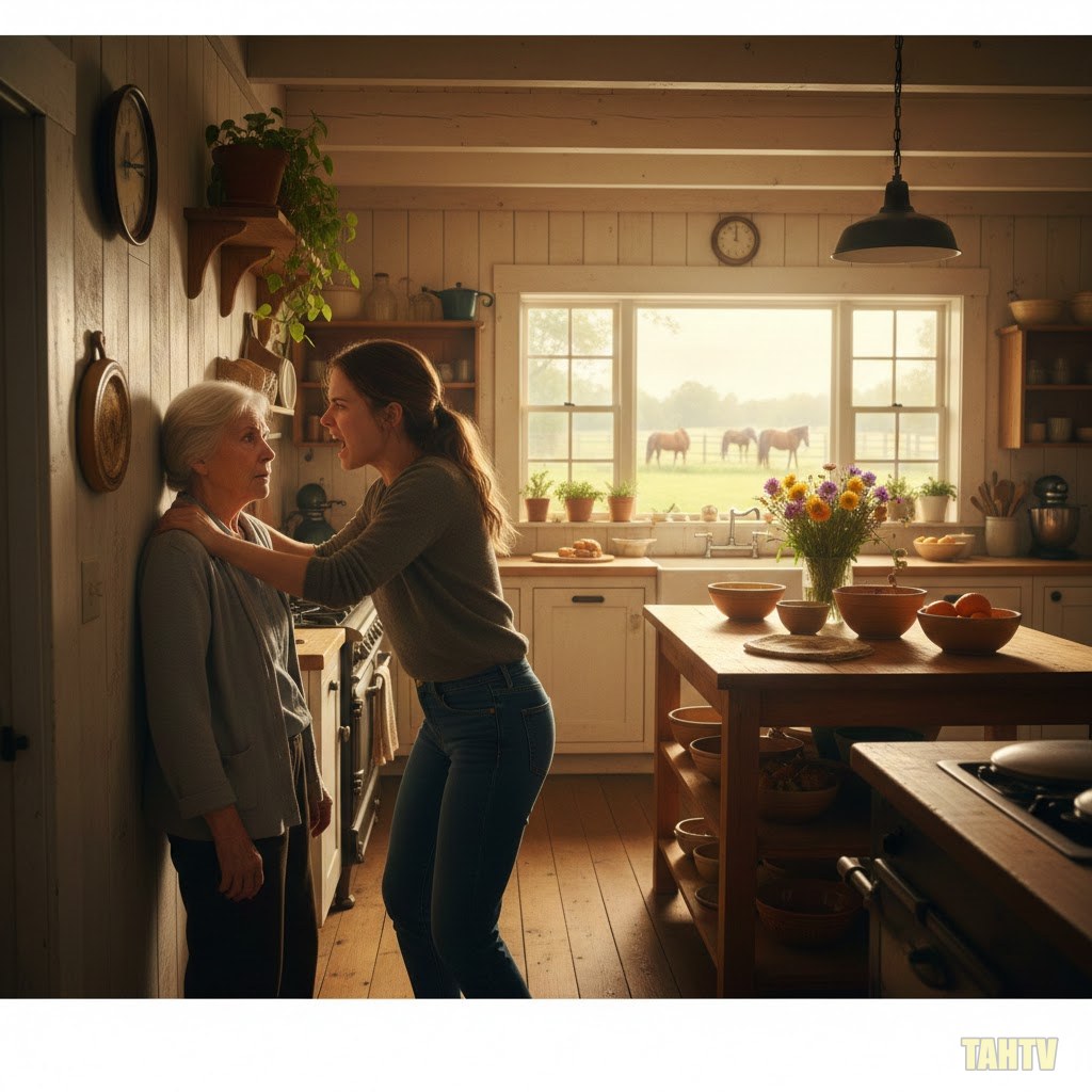 when my daughter Alexis shoved me against the kitchen wall and yelled, “Oh, you’re going to the nursing home. Oh, or you can sleep with the horses in the paddock. Pick now.” I felt my heart shatter into a thousand pieces, not because of the threat itself, but because I only saw coldness in her eyes, as if I were an old piece of furniture taking up too much space.