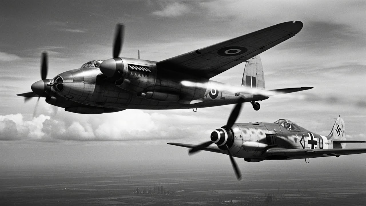 The Luftwruffers Fauler Wolf 1 to90 and the latest Messmid 109G variants were closing the gap. Interceptions were becoming uncomfortably frequent. A mosquito bounced over the RURE might outrun its pursuer, but the margin was thinning. Pilots began returning with stories of tracer rounds passing closer, of dives that barely opened the distance, of engines screaming at emergency power that still wasn’t quite emergency enough. The Mosquito had proven De Havlin’s vision.