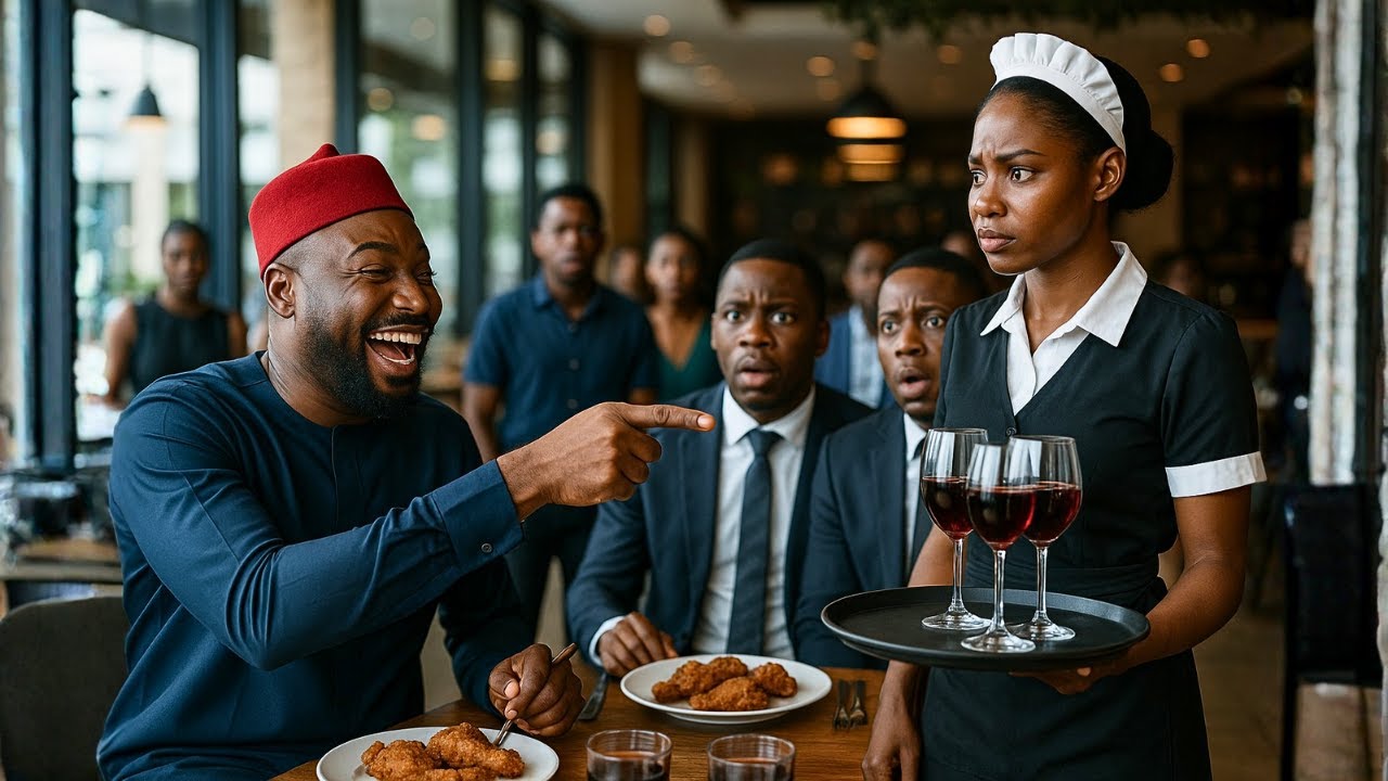 The chandelier above them trembled a little, as if even the light wanted to see what would happen. Amara did not blink. She set the tray down gently on the table next to the glasses of juice and the shining forks. She breathed in slow. The smell of pepper soup and suya drifted from the kitchen. The air felt warm, buzzing, like wires inside a wall. Her eyes lifted to Benjamin’s. The man who humiliated waitresses.